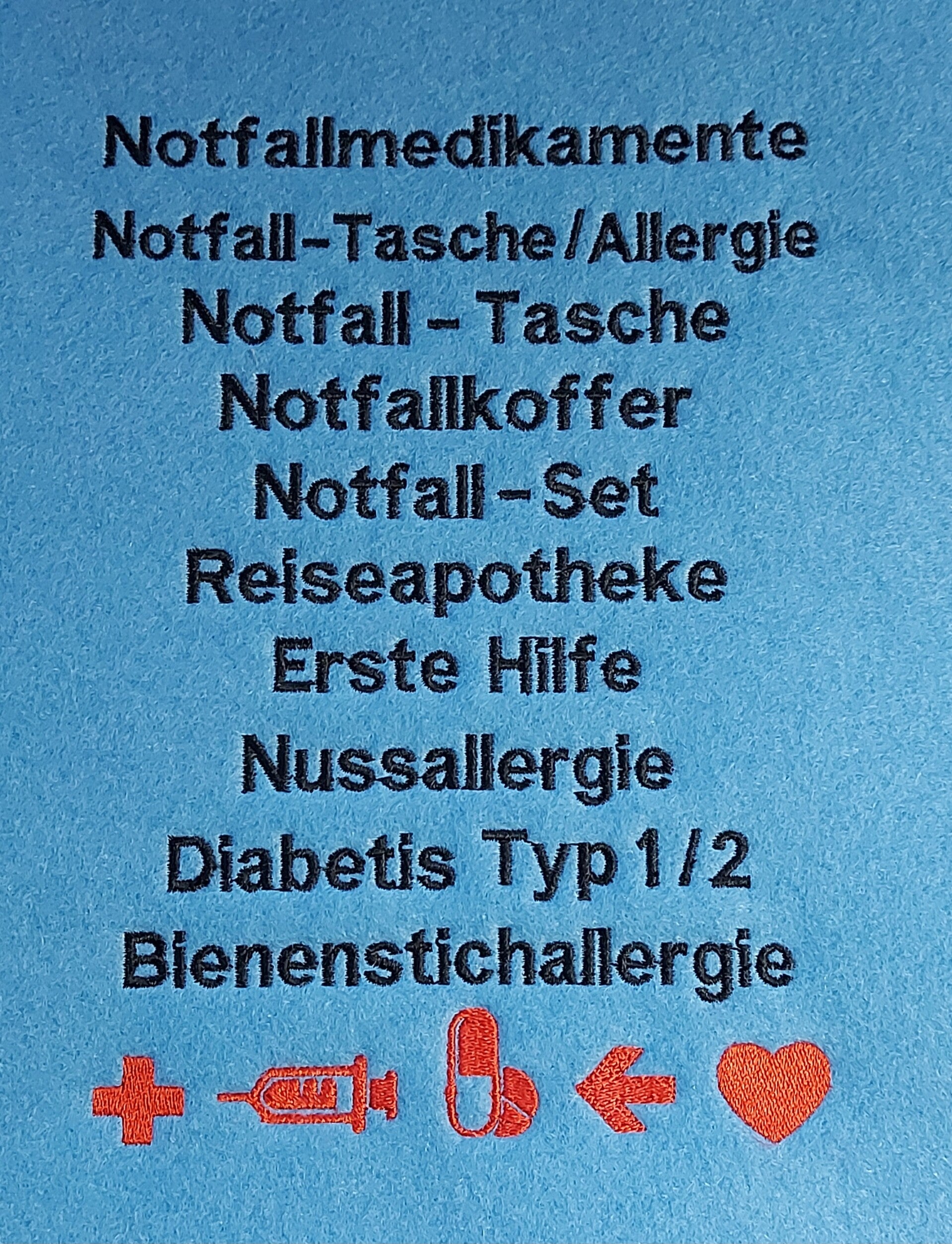 Schlüsselanhänger „Notfallmedikamente“ – Bestickt ubd gut sichtbar!